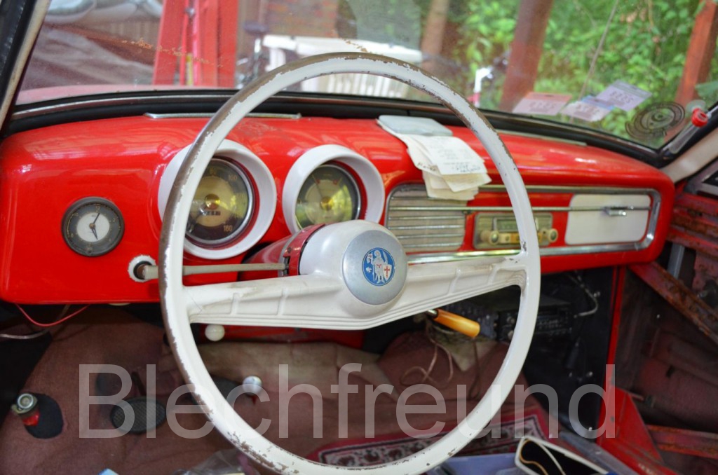 Blech ist bis auf die Motorhaube original. Bodenblech teilweise erneuert. Technik (Motor, Heizung, Beleuchtung) wurde auf 1000er Motor umgebaut. Stoßstangen und Kühlergrill von späterem Baujahr.