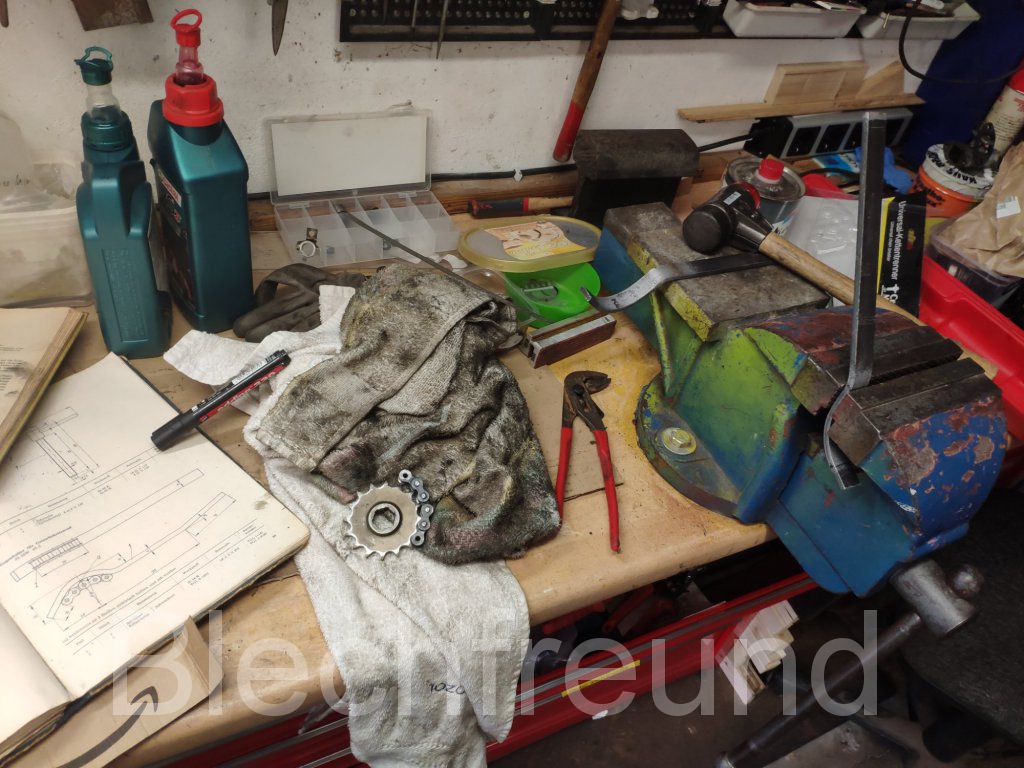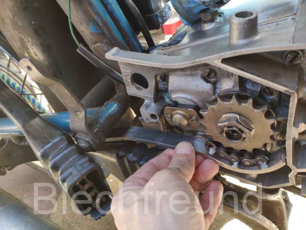 Kommen wir nun zur Kette. Für mich immer Fummelkram, egal ob Fahrrad oder Motorrad, der Zeit frisst. Hier war es wieder so ein Fall.